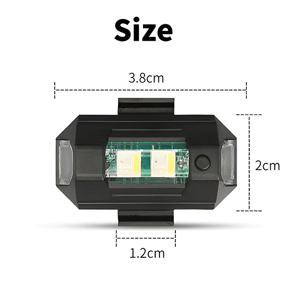 🚨 Të dukshme nga mbi 100 metra – 7 ngjyra RGB dhe 3 mënyra ndriçimi (stroboskop i shpejtë, i ngadaltë, i qëndrueshëm) që mund të ndërrohen me një shtypje butoni.